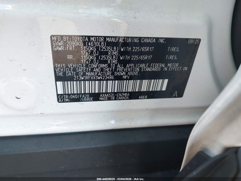 • 2T3W1RFVXSW423486