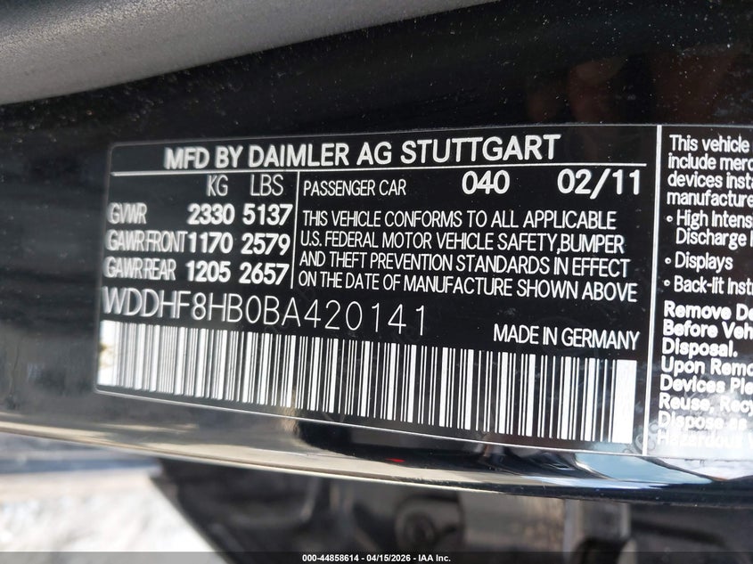 • WDDHF8HB0BA420141