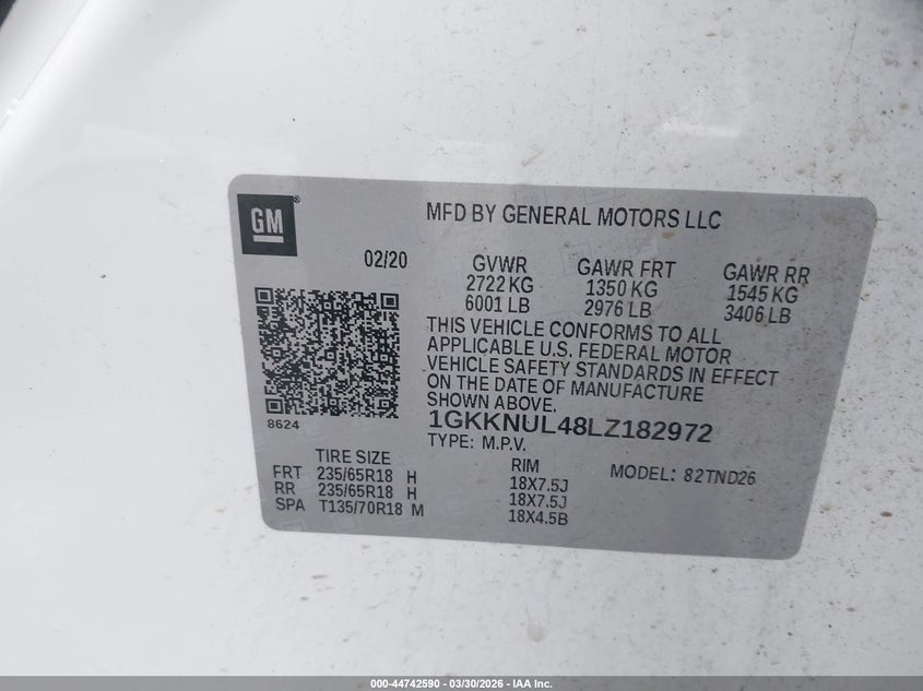 • 1GKKNUL48LZ182972