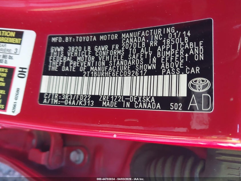 • 2T1BURHE6EC092617