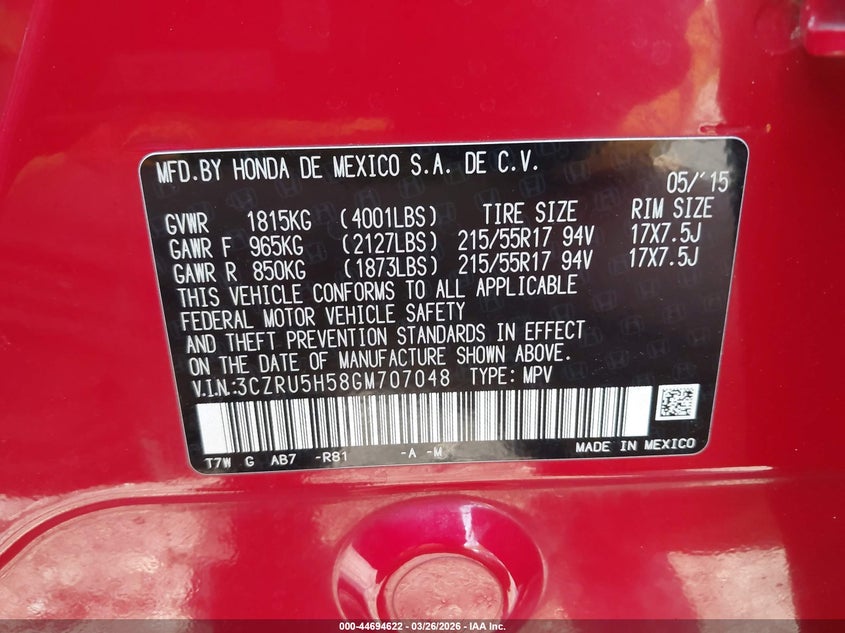 • 3CZRU5H58GM707048
