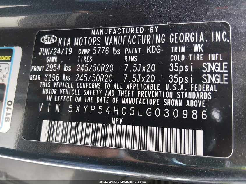 • 5XYP54HC5LG030986