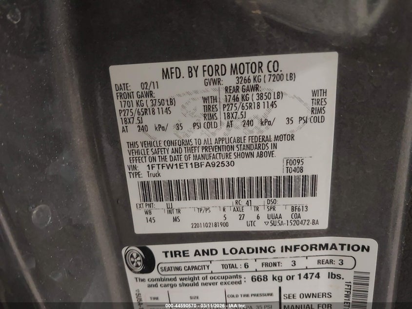 • 1FTFW1ET1BFA92530