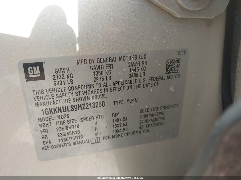• 1GKKNULS9HZ213250
