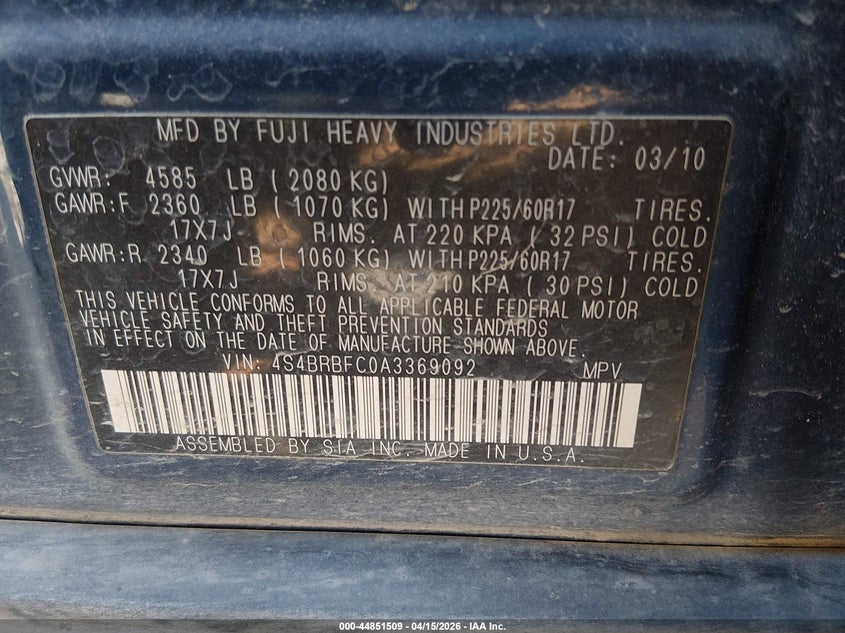 • 4S4BRBFC0A3369092