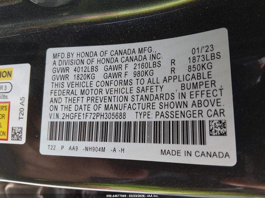 • 2HGFE1F72PH305688
