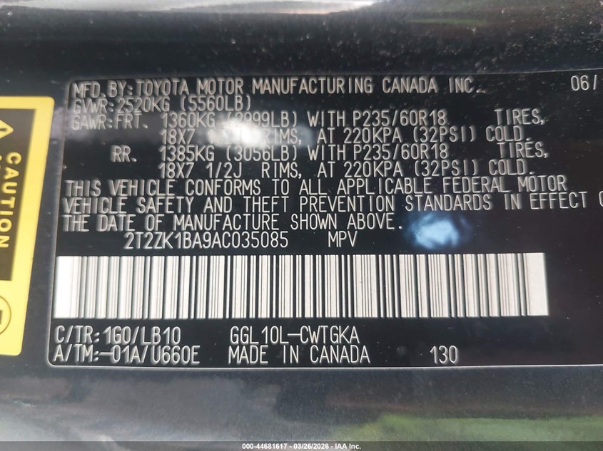 • 2T2ZK1BA9AC035085