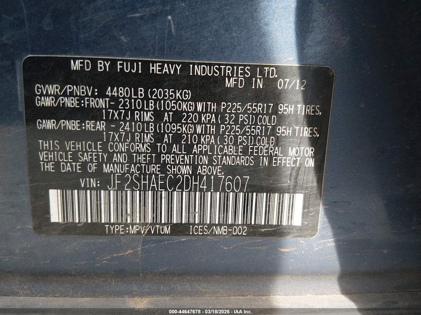 • JF2SHAEC2DH417607