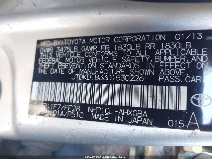 • JTDKDTB33D1530226