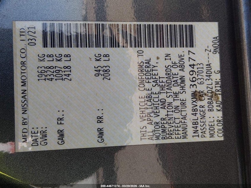 • 1N4BL4BVXMN369477