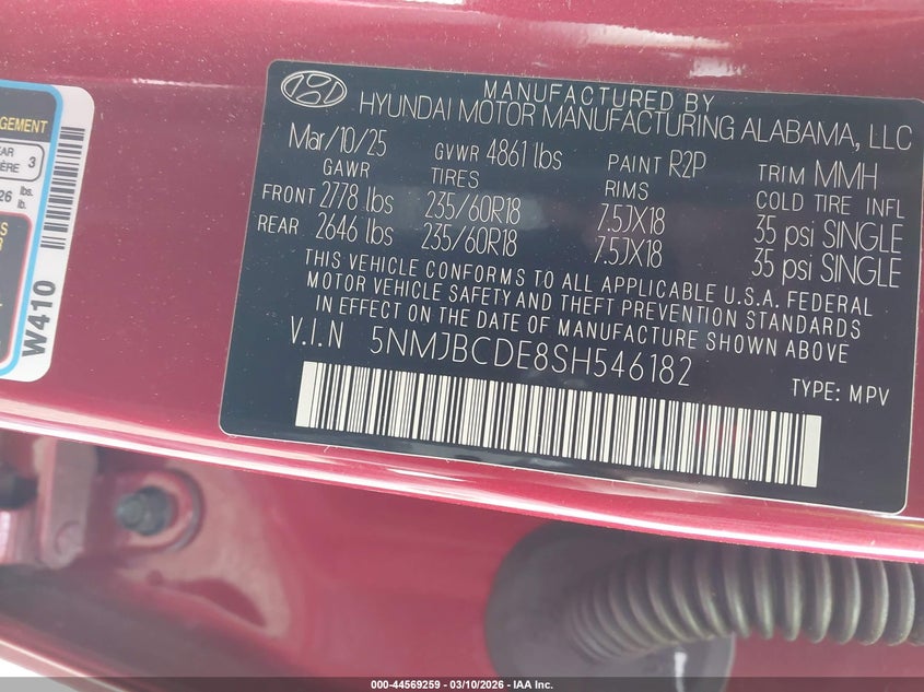 • 5NMJBCDE8SH546182