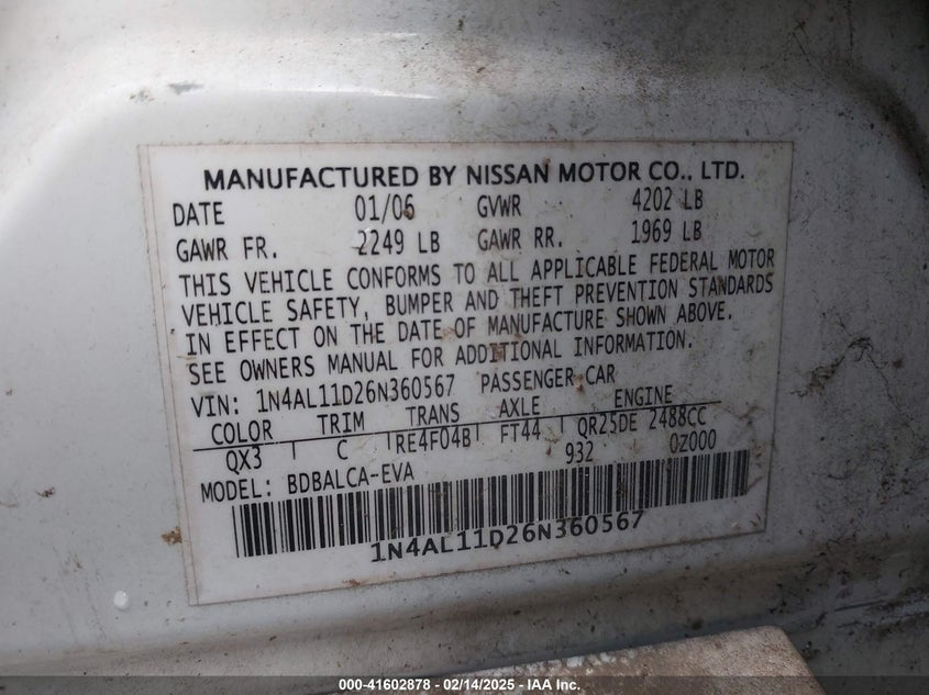 2006 NISSAN ALTIMA 2.5 S for Sale in Eugene, OR