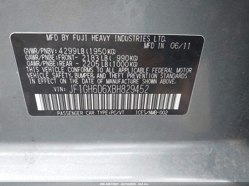 • JF1GH6D6XBH829452