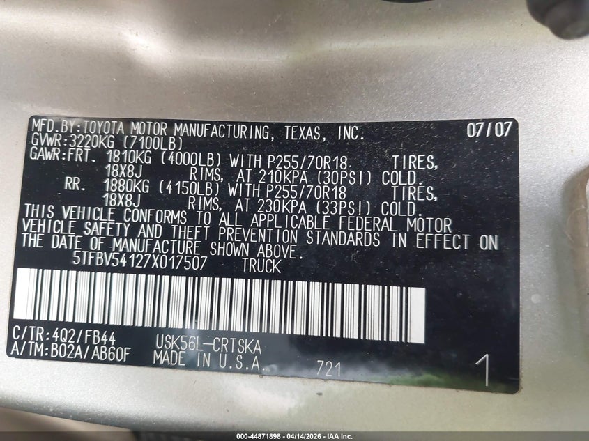 • 5TFBV54127X017507