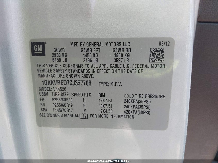• 1GKKVRED7CJ357706