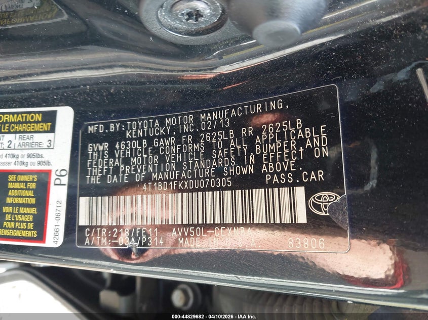 • 4T1BD1FKXDU070305