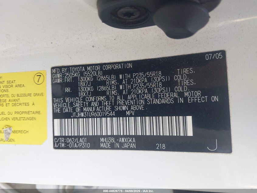• JTJHW31U960019544
