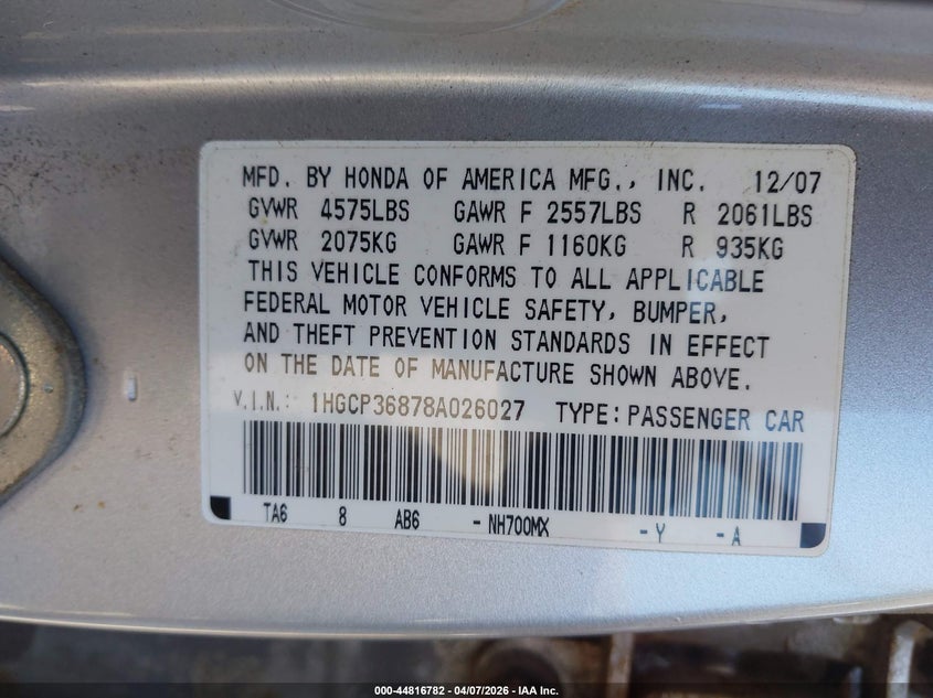 • 1HGCP36878A026027