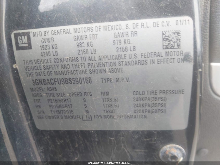 • 3GNBACFU9BS590168