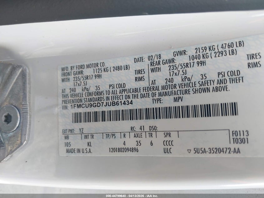 • 1FMCU9GD7JUB61434