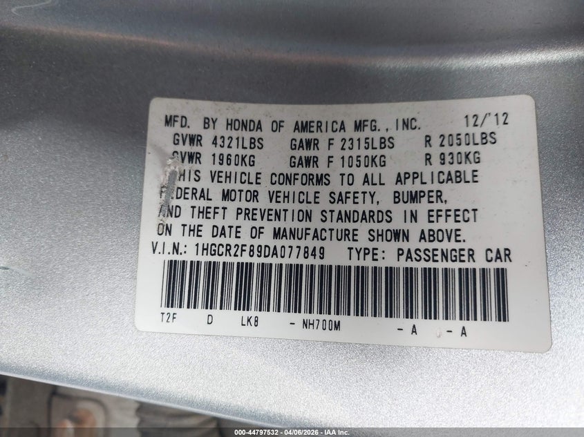 • 1HGCR2F89DA077849