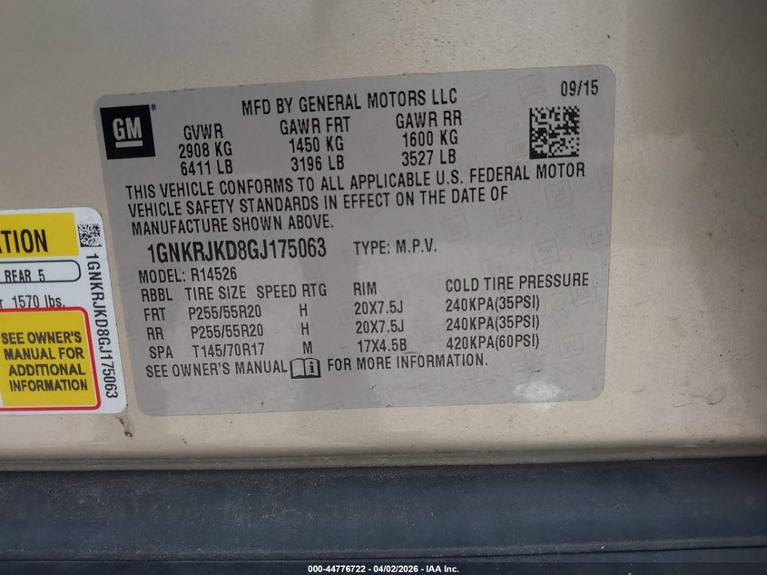 • 1GNKRJKD8GJ175063