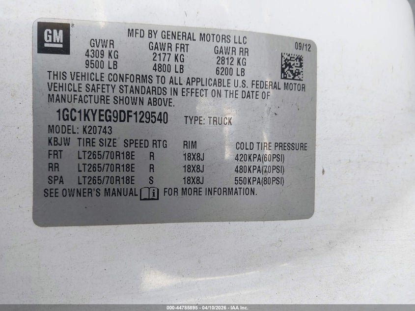 • 1GC1KYEG9DF129540