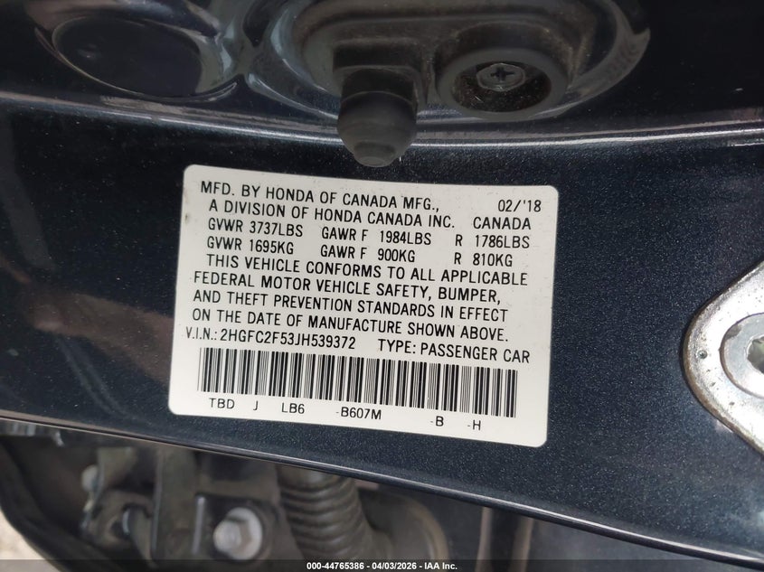 • 2HGFC2F53JH539372