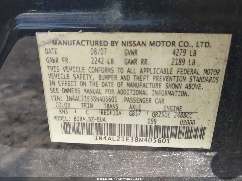 2008 NISSAN ALTIMA 2.5 S for Sale in Ravenel, SC