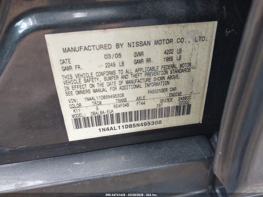 2005 NISSAN ALTIMA 2.5 S for Sale in Suffolk, VA