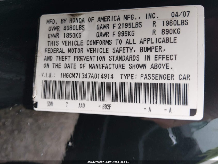 • 1HGCM71347A014914
