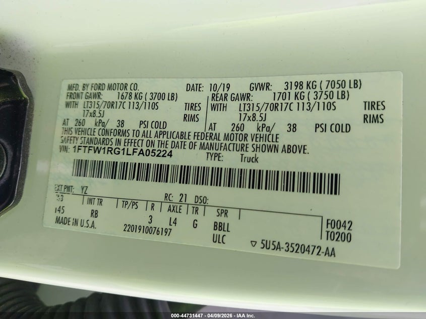 • 1FTFW1RG1LFA05224