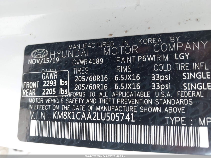 • KM8K1CAA2LU505741