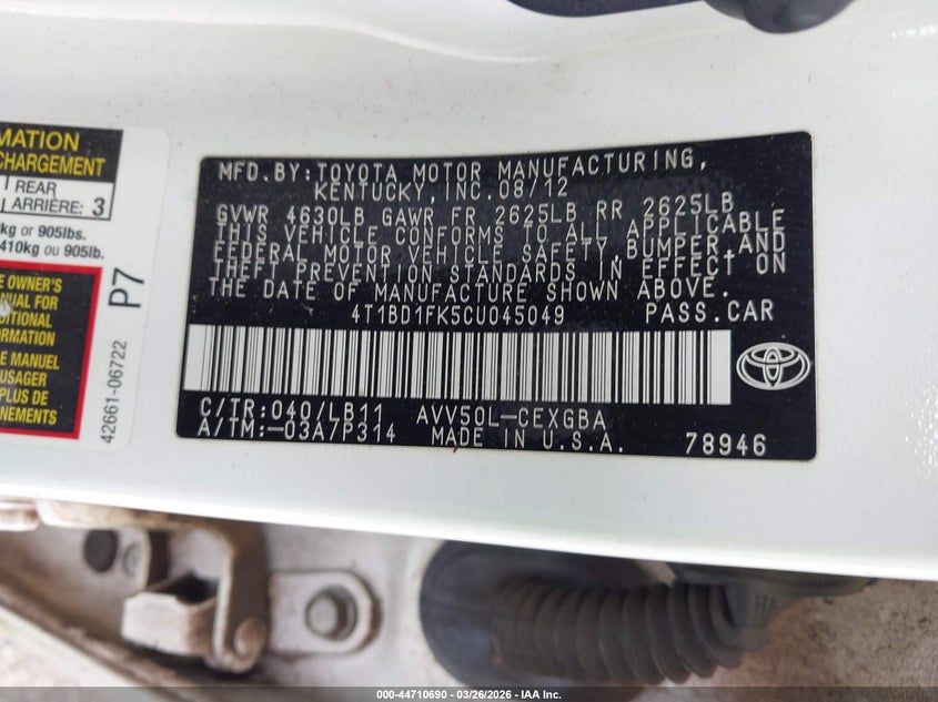 • 4T1BD1FK5CU045049