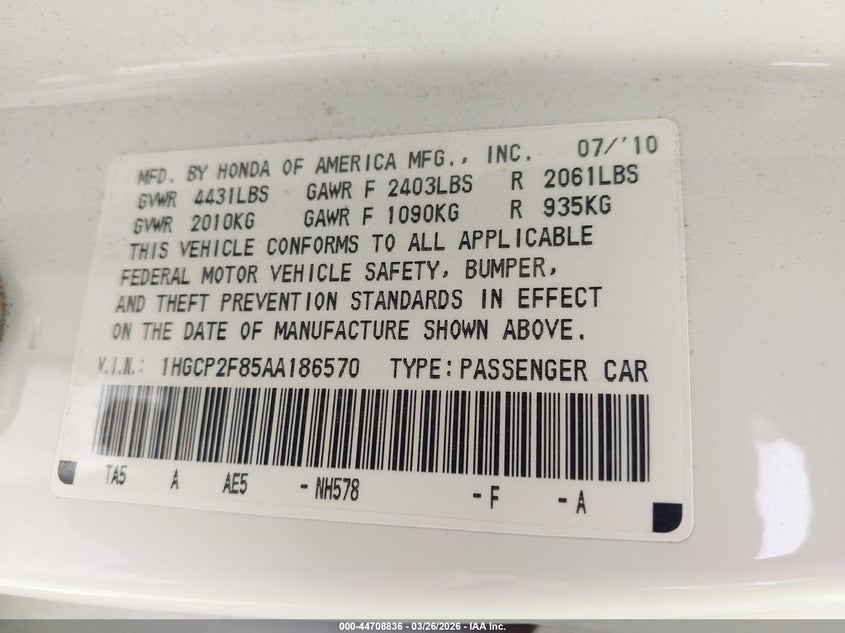• 1HGCP2F85AA186570