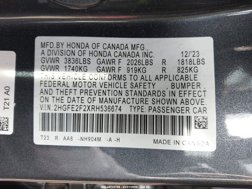 • 2HGFE2F2XRH536674