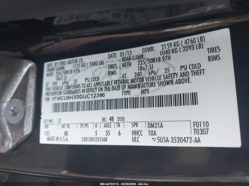 • 1FMCU9HX0DUC12396