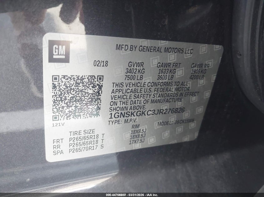 • 1GNSKGKC3JR276826