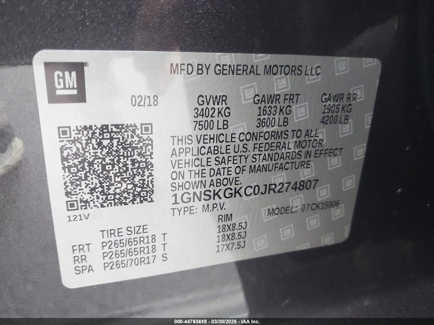 • 1GNSKGKC0JR274807