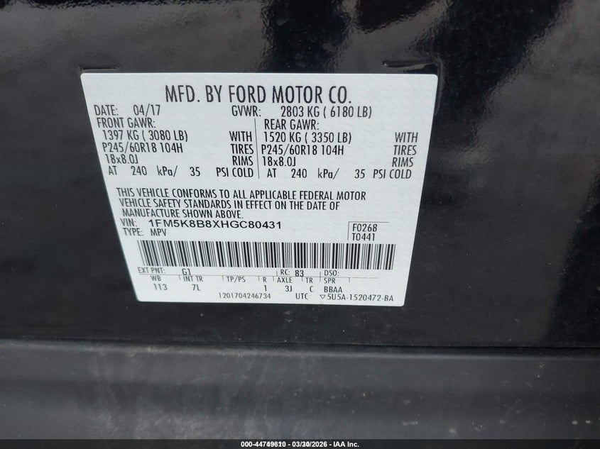 2017 FORD EXPLORER for Sale in Gov Auctions Zone 1, None