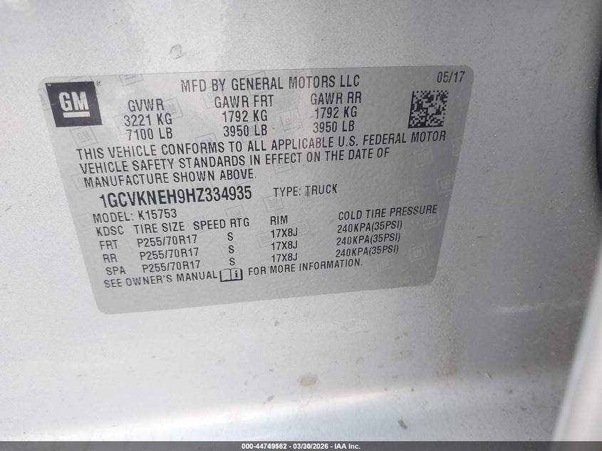 2017 CHEVROLET SILVERADO 1500 WT for Sale in Gov Auctions Zone 1, None