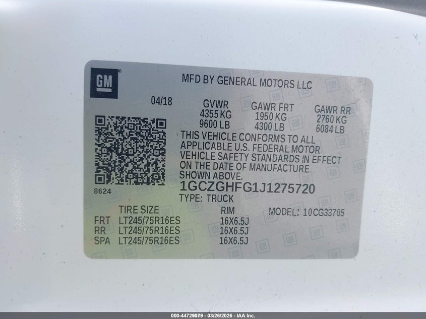 • 1GCZGHFG1J1275720