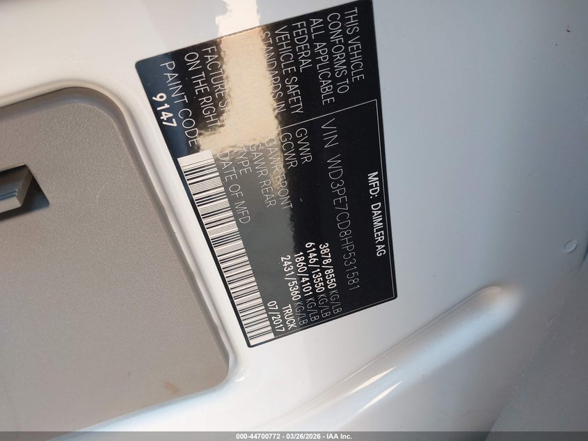 2017 MERCEDES-BENZ SPRINTER 2500 STANDARD ROOF V6 for Sale in Simpsonville, SC