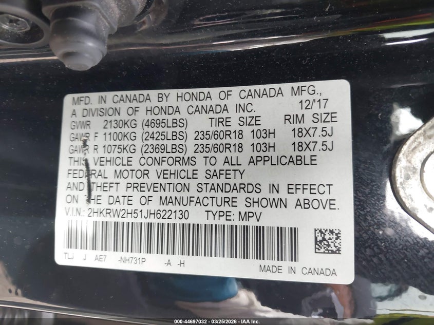 • 2HKRW2H51JH622130