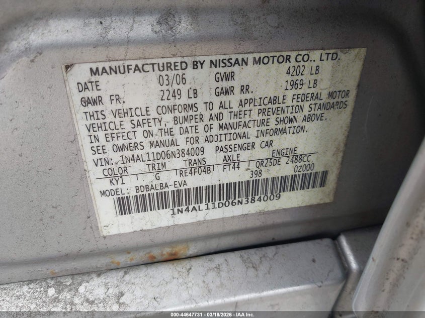 2006 NISSAN ALTIMA 2.5 S for Sale in Medford, NY