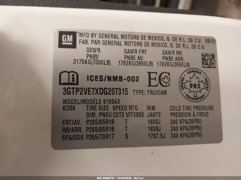 • 3GTP2VE7XDG207315
