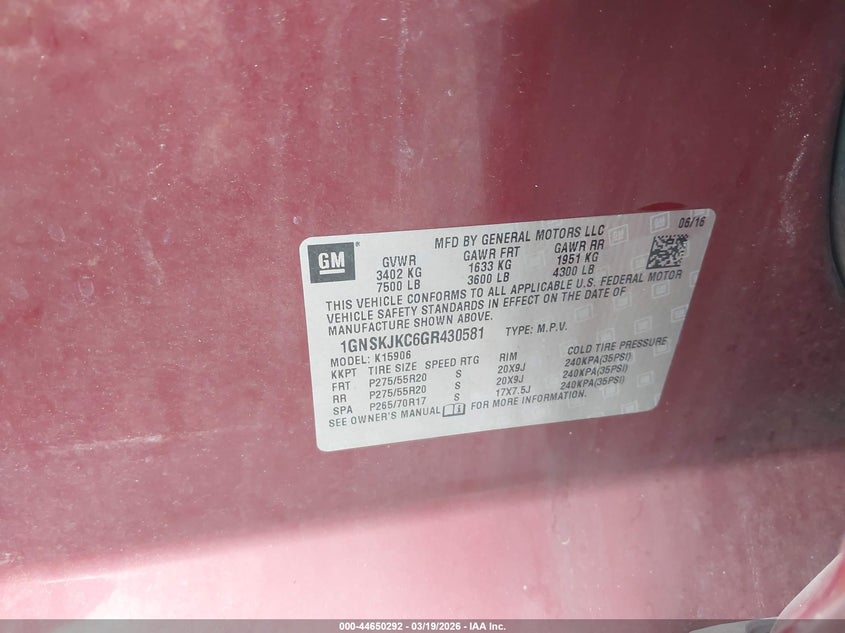 • 1GNSKJKC6GR430581