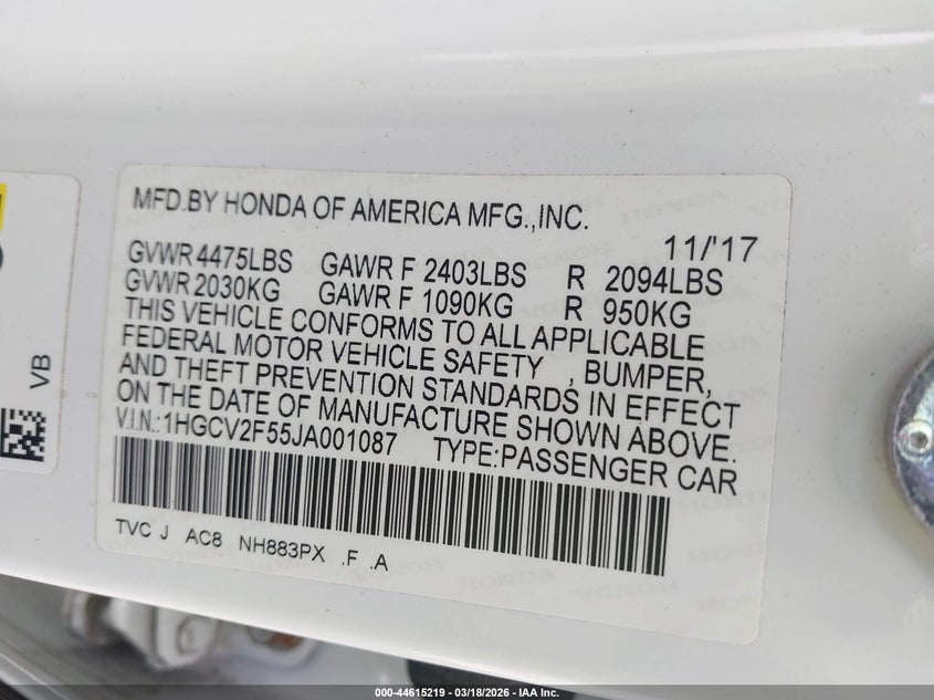 • 1HGCV2F55JA001087