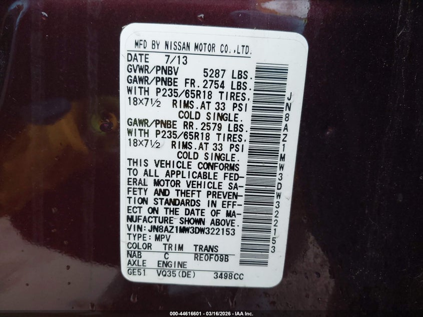 • JN8AZ1MW3DW322153