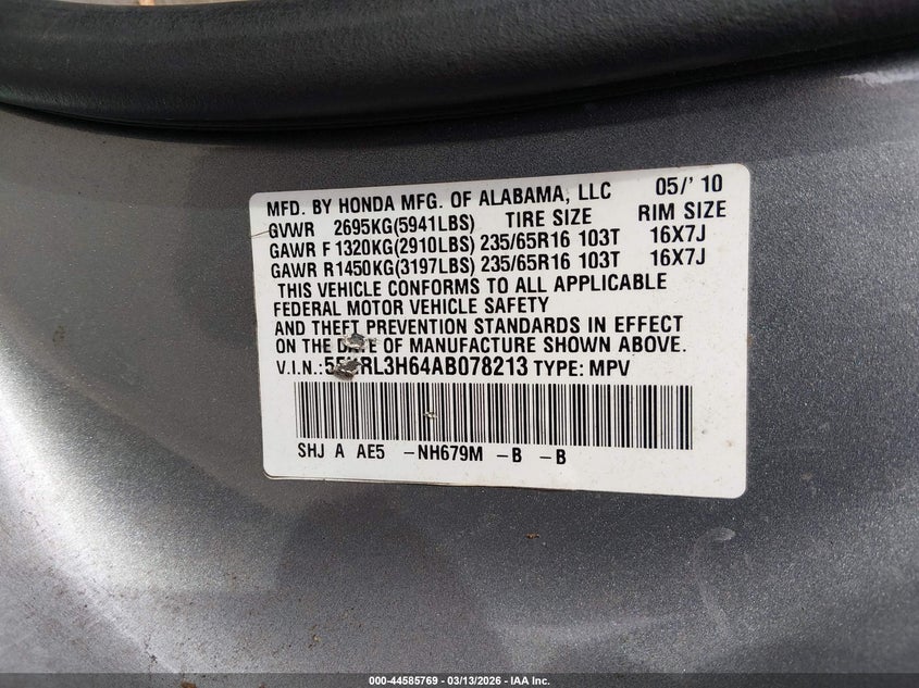 • 5FNRL3H64AB078213